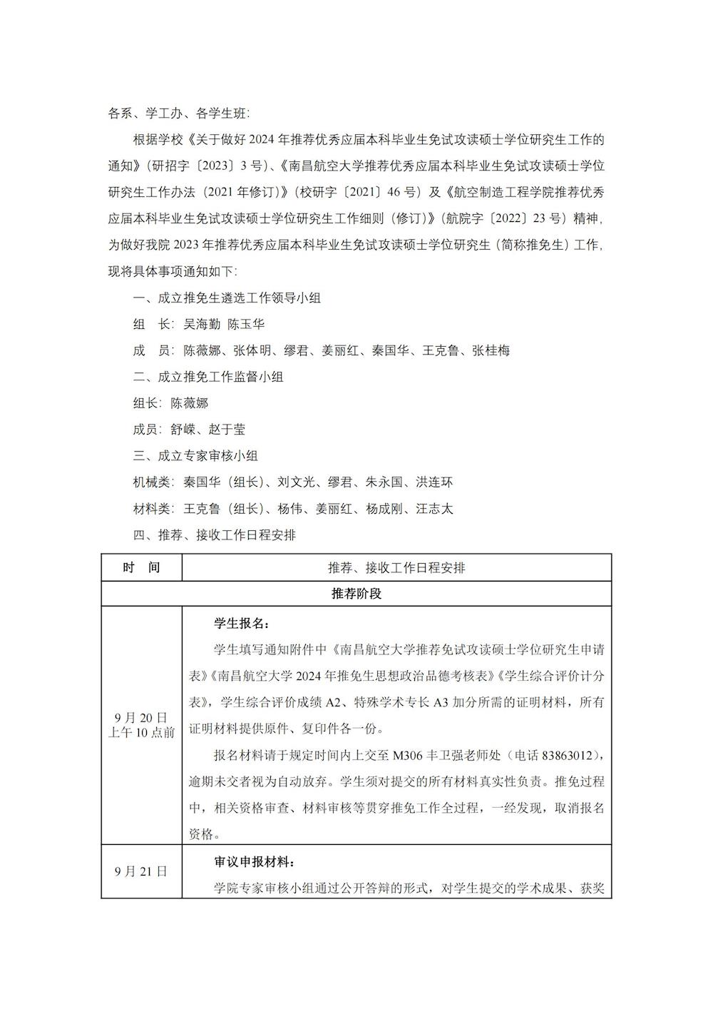 航空制造工程学院关于做好2024年推荐优秀应届本科毕业生免试攻读硕士学位研究生工作的通知